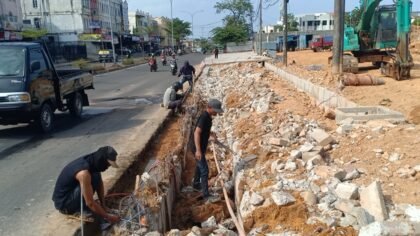 KritisNews.id, Batam – Trotoar di jalan Laksana Bintan Sungai Panas dibongkar oleh pekerja proyek Rally...